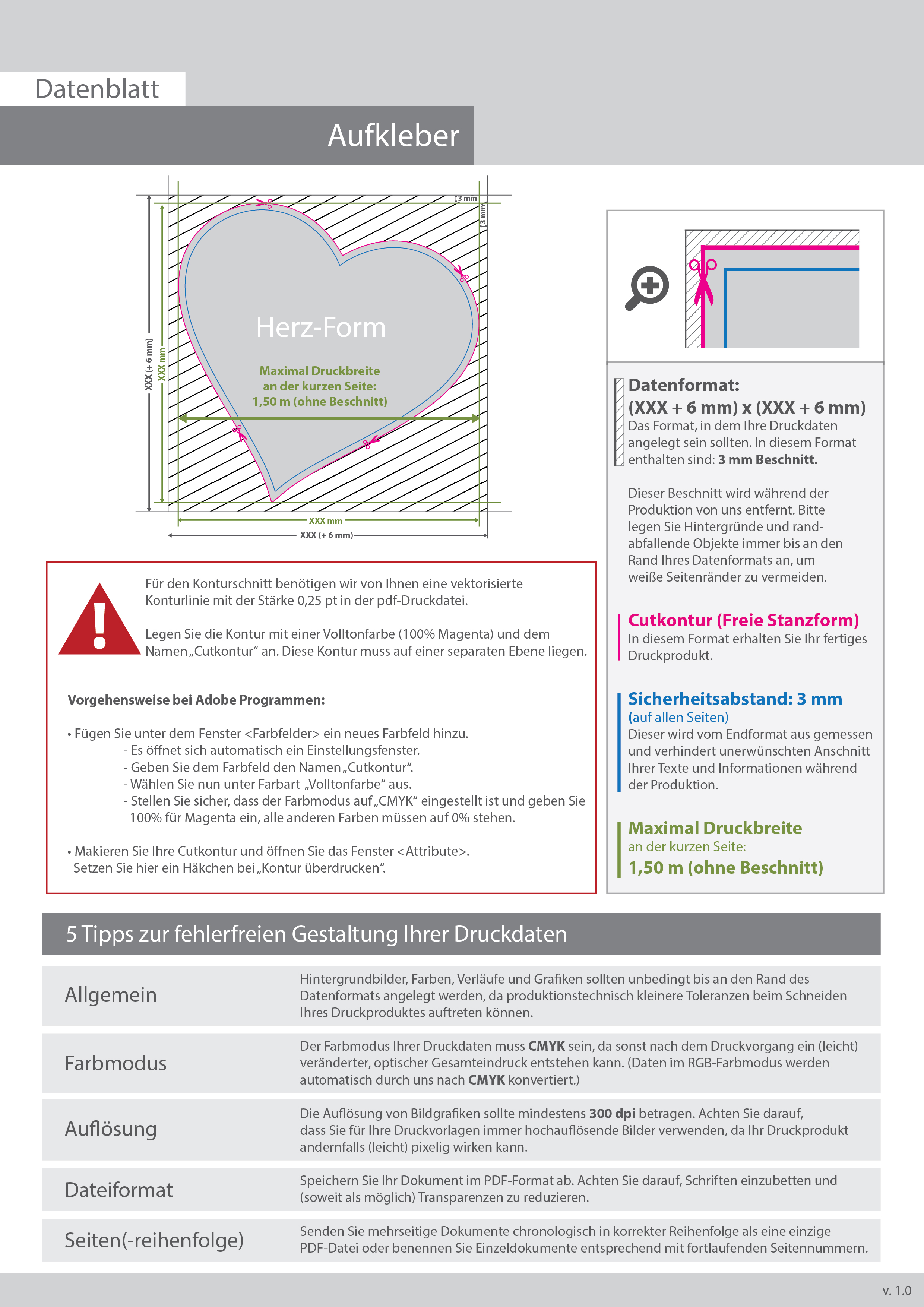 Hinterglasaufkleber 4/0 farbig bedruckt in Herz-Form konturgeschnitten