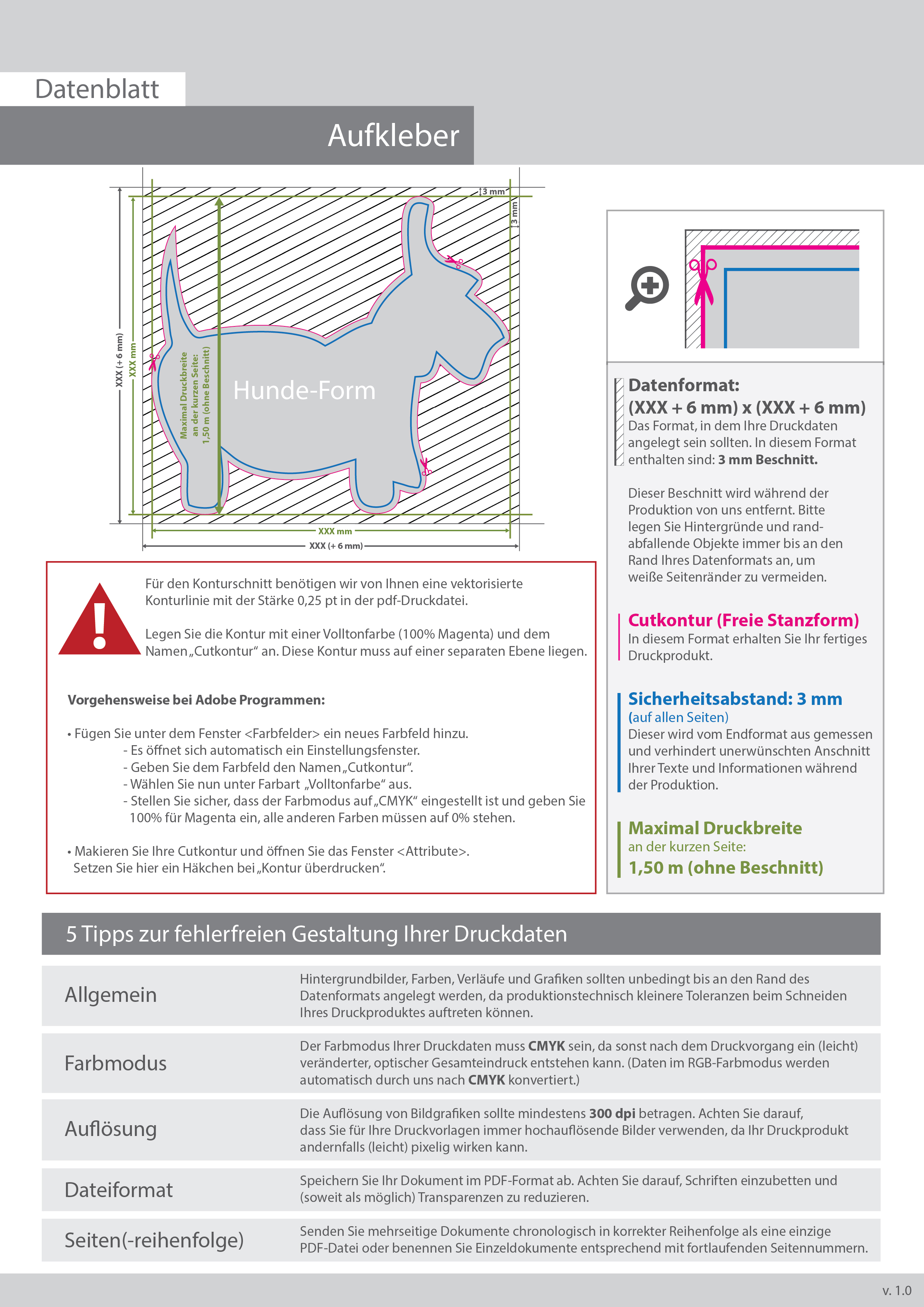Hinterglasaufkleber 4/0 farbig bedruckt in Hund-Form konturgeschnitten