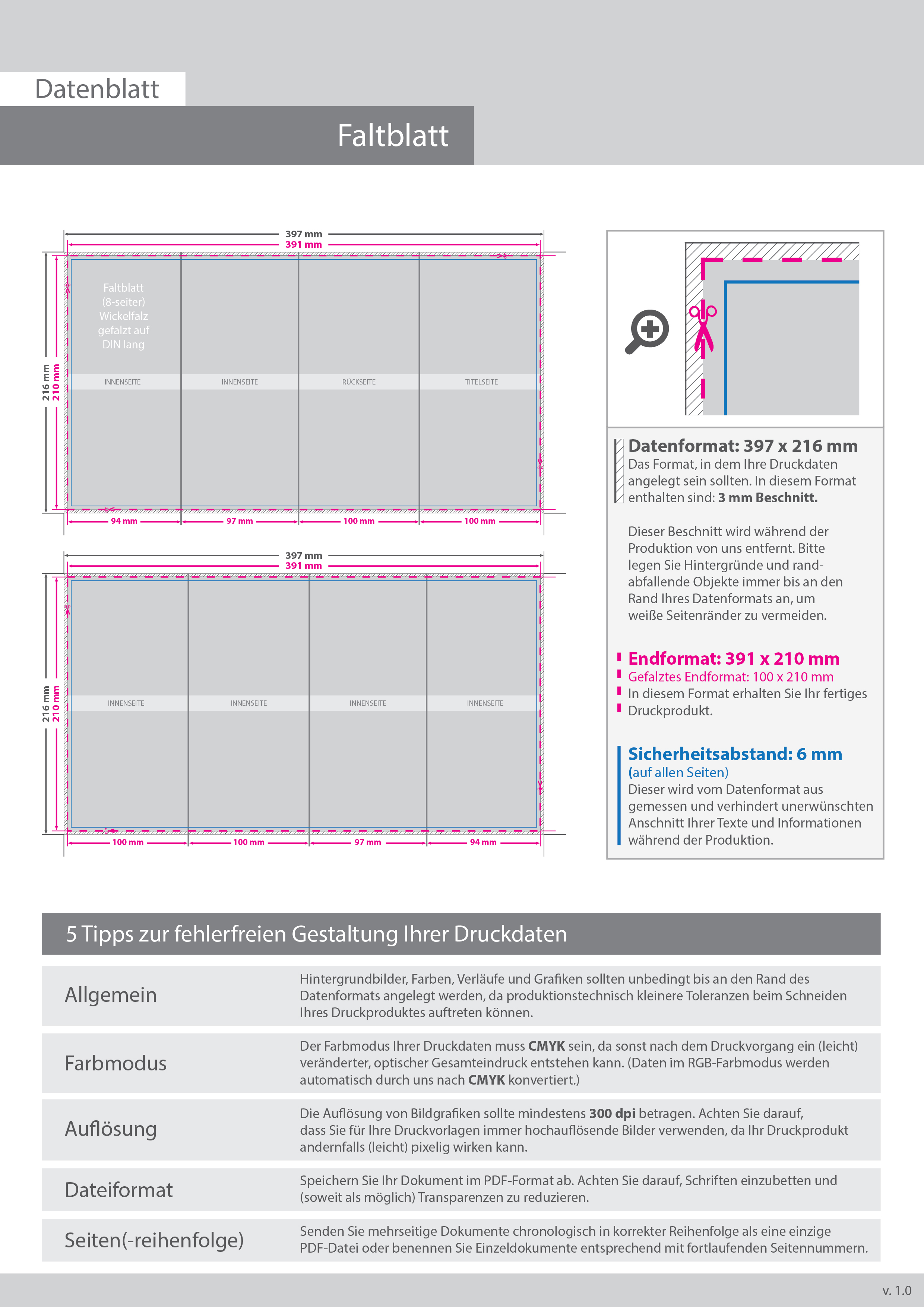 Faltblatt, gefalzt auf DIN lang, 8-seiter (Wickelfalz)