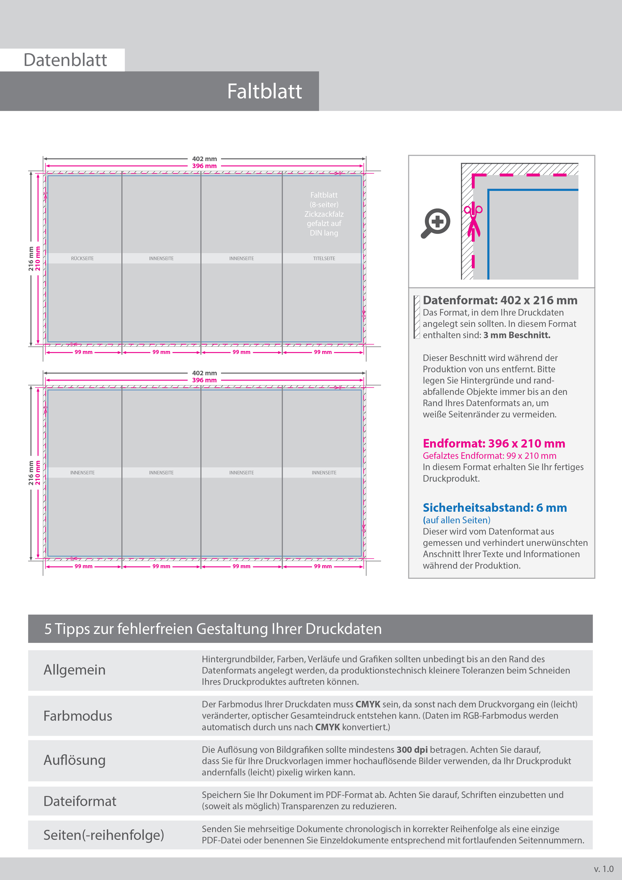 Faltblatt, gefalzt auf DIN lang, 8-seiter (Zickzackfalz)
