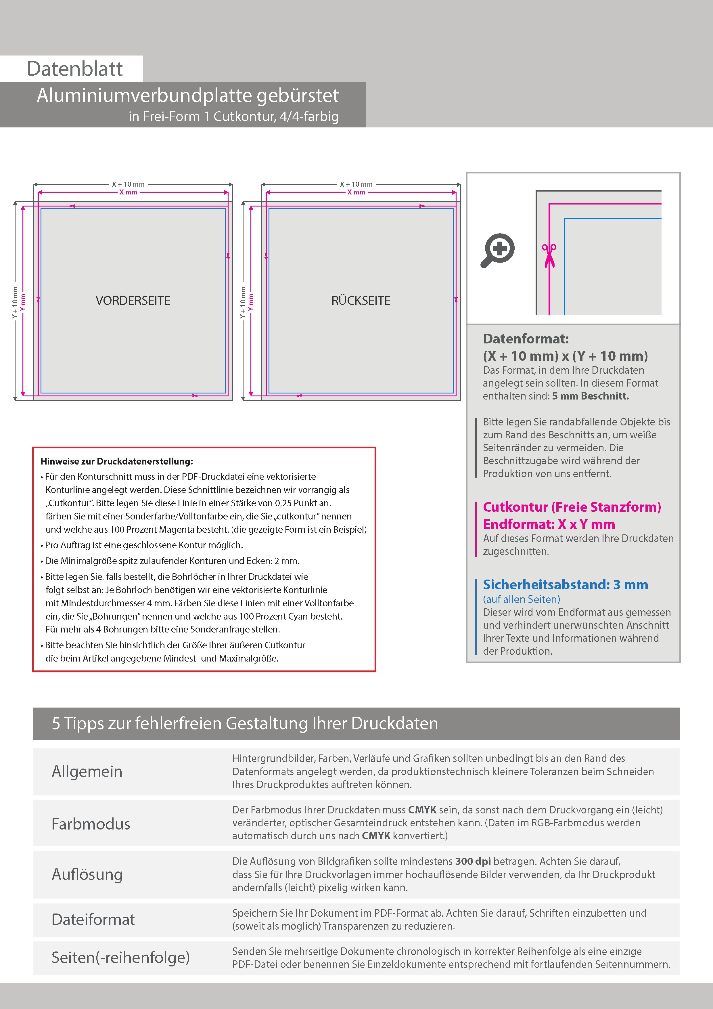 Aluminiumverbundplatte silber gebürstet in Frei-Form (eine Konturfräsung möglich)