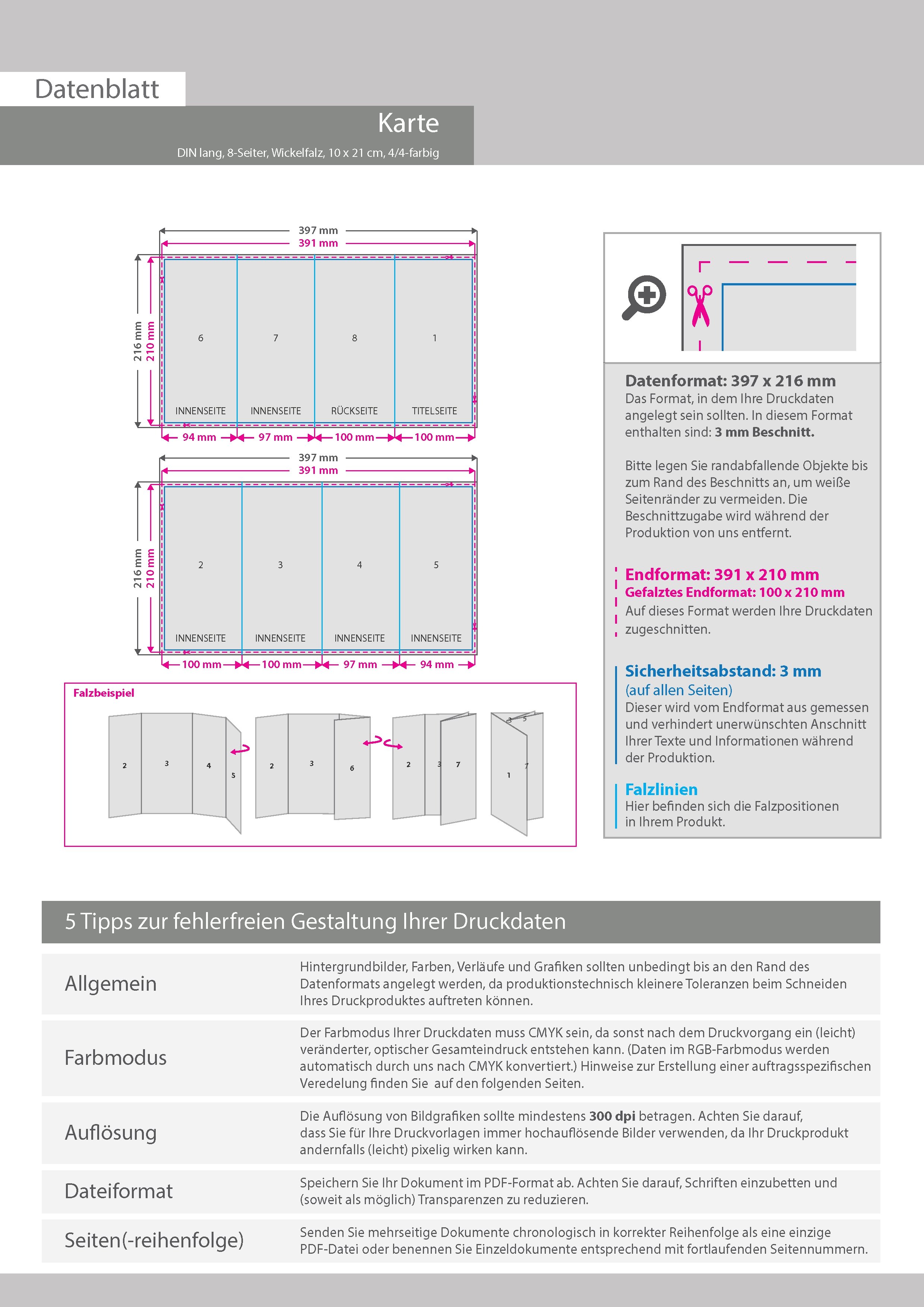 Einladungskarte, gefalzt auf DIN lang, vertikaler Wickelfalz, 8-seitig
